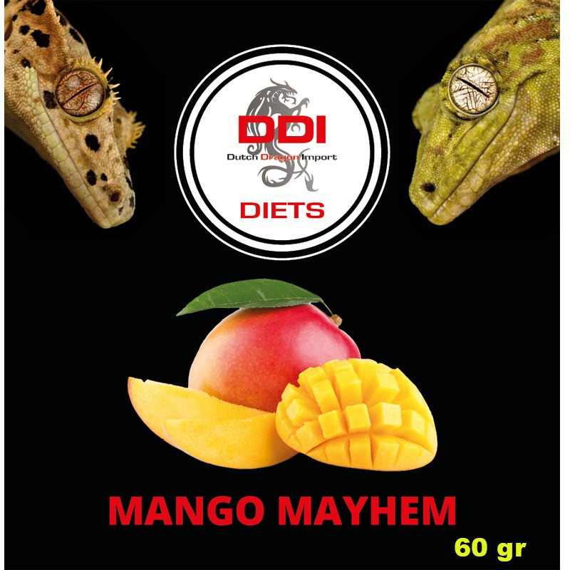 Essen DDI Diets Mango Mayhem ist eine Alleinnahrung für fruchtfressende Geckos. Es enthält Früchte, Vitamine, Mineralien, Aminosäuren, Bienenpollen und Insekten.