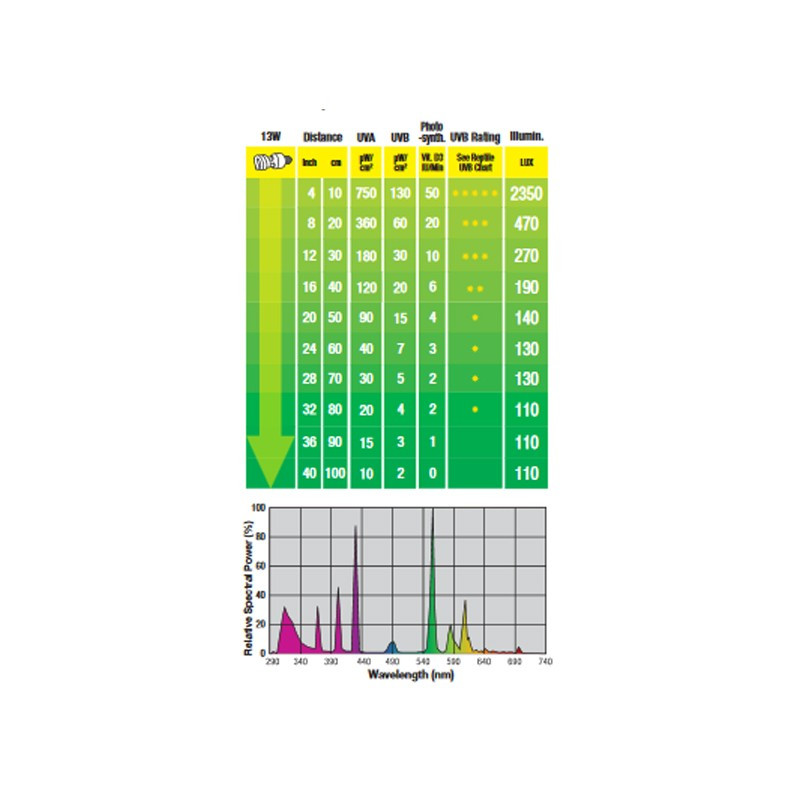 Die EXO TERRA Reptile UVB 200 13 W Reptilienlampe strahlt das ideale Spektrum an UVB-Strahlen für eine optimale Photosynthese von Vitamin D3 aus.