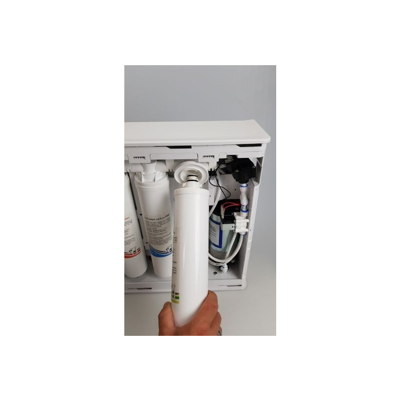 Der GLAMORCA Deionisierungsfilter erzeugt Wasser von sehr hoher Reinheit. Dieser Schritt entfernt die Anionen und Kationen, die nach dem Passieren der Membran noch im Wasser vorhanden sind.