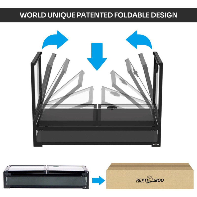 Das Repti Zoo Easy Folding Terrarium ist ein einzigartiges Konzept eines faltbaren Terrariensets. Der Aufbau dauert weniger als 5 Minuten!