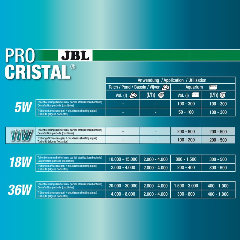 Der JBL ProCristal Compact UV-C 11W UV-Sterilisator kann die Vermehrung einzelliger Algen stoppen und Ihr Wasser in nur wenigen Tagen kristallklar machen.