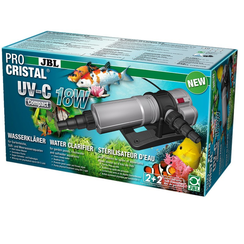 Der JBL ProCristal Compact UV-C 18W UV-Sterilisator kann die Vermehrung einzelliger Algen stoppen und Ihr Wasser in nur wenigen Tagen kristallklar machen.