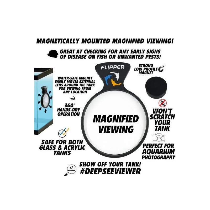 Flipper DeepSee Max, est une loupe optique à fixation magnétique pour regarder des détails sans déformation dans votre aquarium.
