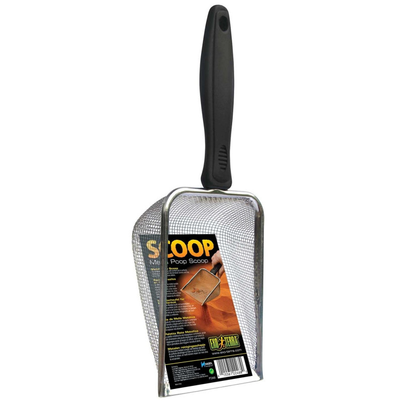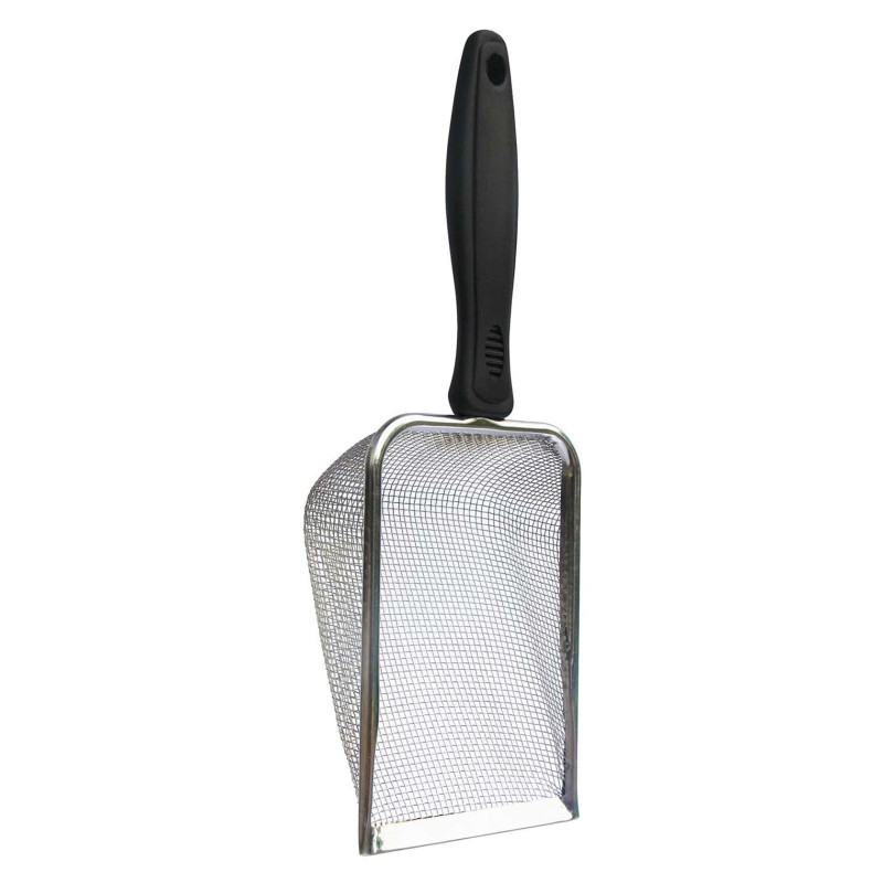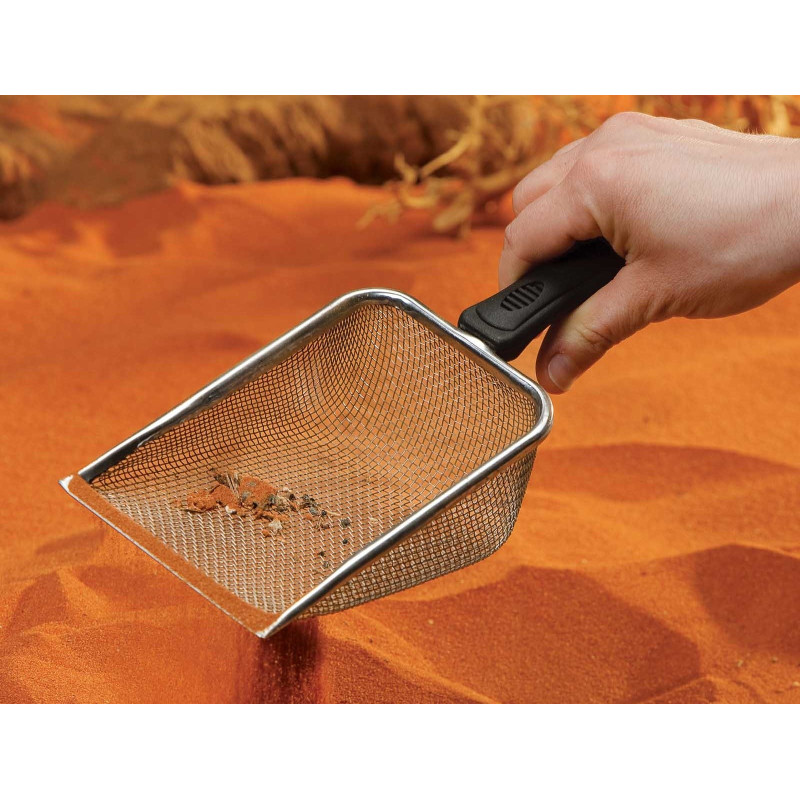 Ce tamis en métal durable muni d’une poignée confort est d’un format parfait, a des angles permettant d’atteindre les coins dans le terrarium et de petits orifices pour ramasser beaucoup de débris.