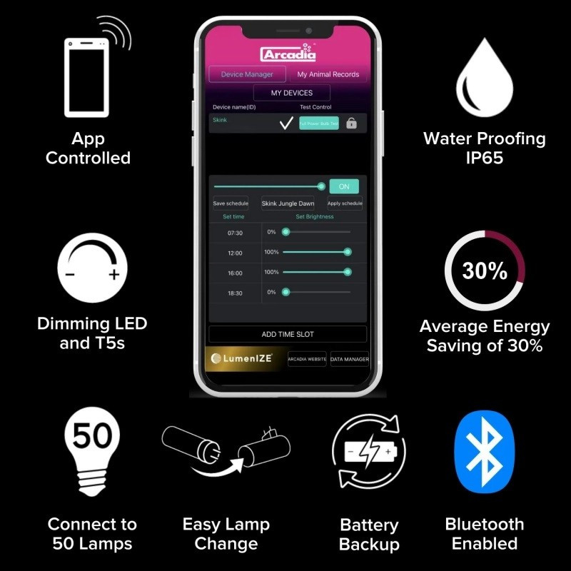 En effet avec l'application dédiée vous pouvez faire varier le temps et le niveau de luminosité dans l'habitat de vos animaux et ainsi créer des cycles de lumière naturelle !