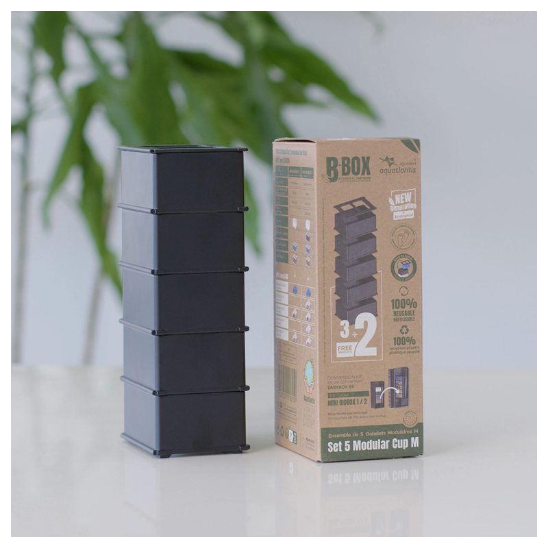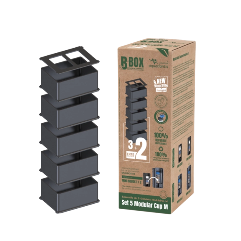 AQUATLANTIS B-Box M Conversion est un Kit de conversion de 5 gobelets modulaires de taille M pour les filtres Mini Biobox.