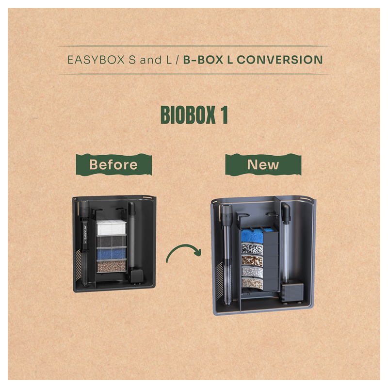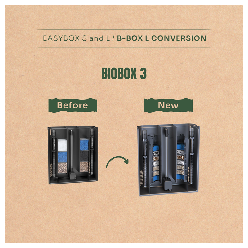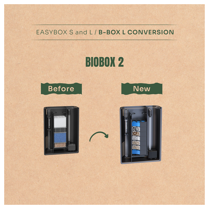 Toutes les anciennes versions des filtres Biobox peuvent être mises à niveau grâce à ce kit de conversion compatible.