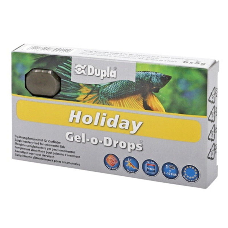 DUPLA Gel-o-Drops Holiday 6 x 5 g est un aliment spécial vacances, fabriqué à partir d'une gelée alimentaire spéciale, il est idéal pour nourrir tous les poissons tropicaux d'ornement pendant vos vacances.