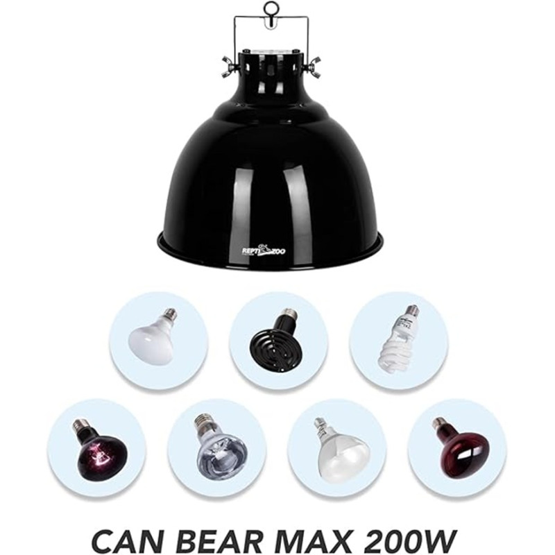 REPTI ZOO Multi-Function Dome Lamp Fixture 200 W est un support de lampe robuste conçu pour les terrariums.