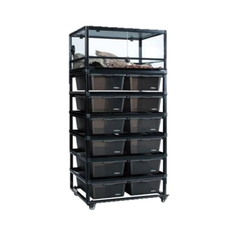 Très facile à entretenir ce rack est facilement déplaçable grâce à ses roues intégrés. Il est possible d'agrandir la structure en empilant d'autres racks ou un terrarium Repti Zoo de bonne dimension.